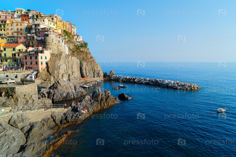 Живописный город Манарола и море Чинкве-Терре, Италия