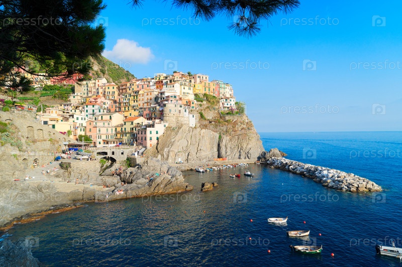 Живописный город Манарола и море Чинкве-Терре, Италия