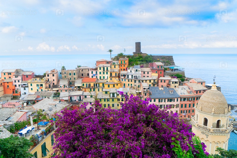 Вид на живописный город Вернацца и гавань Чинкве-Терре, Италия