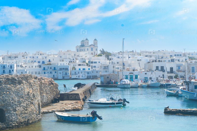 Набережная города Наусса в гавани, красивые греческие острова, Парос Греция