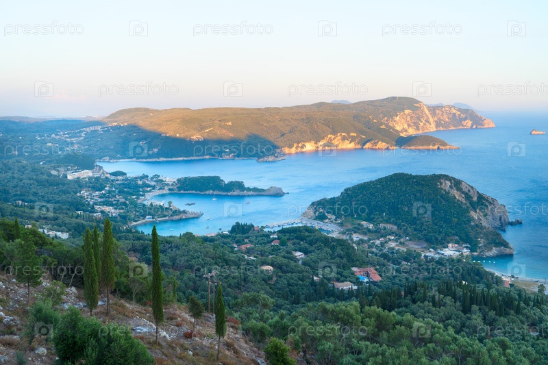 Вид на пляжный залив Палеокастрица на Корфу летом, Греция