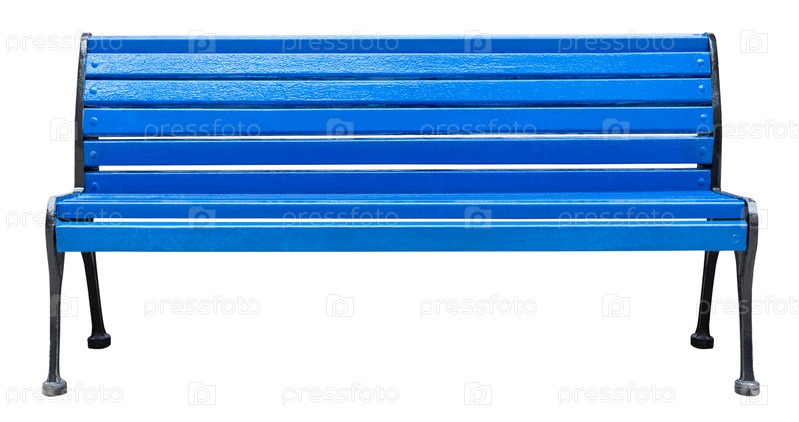 Красочная деревянная скамейка, окрашенная в темно-синий цвет с металлическими ножками, изолированная на белом фоне (элемент дизайна)