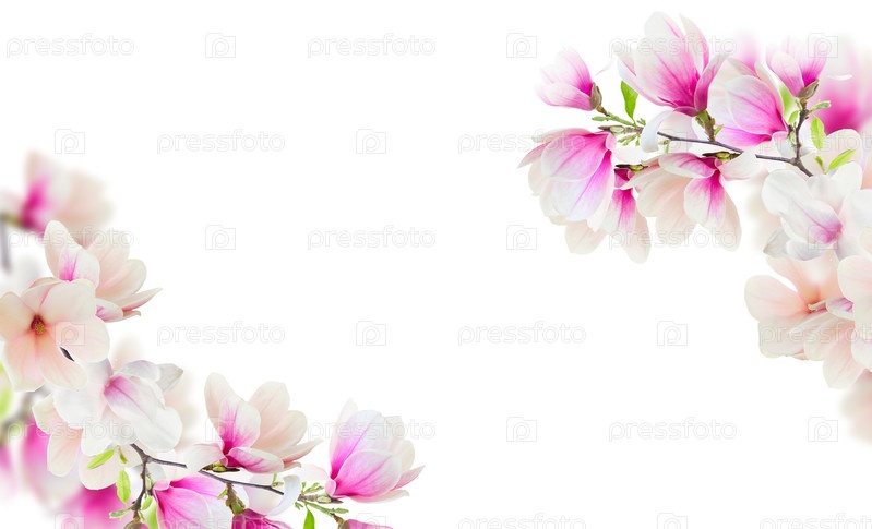 Набор розовой магнолии цветет изолированно на белом фоне