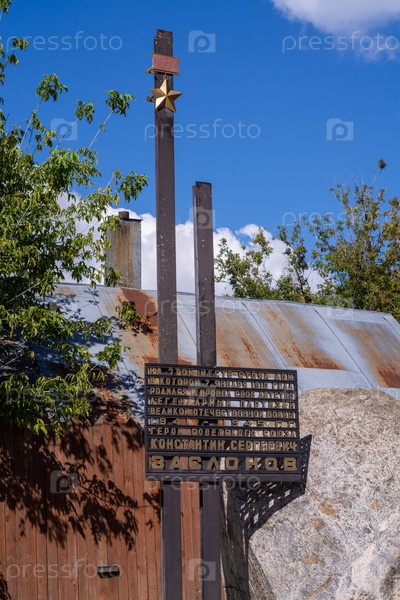 Осташков, Тверская область, Россия - 08/15/2023. Мемориальный камень на месте дома партизана, Героя Советского Союза Константина Заслонова. Памятник Великой Отечественной войне. Обелиск. памятник