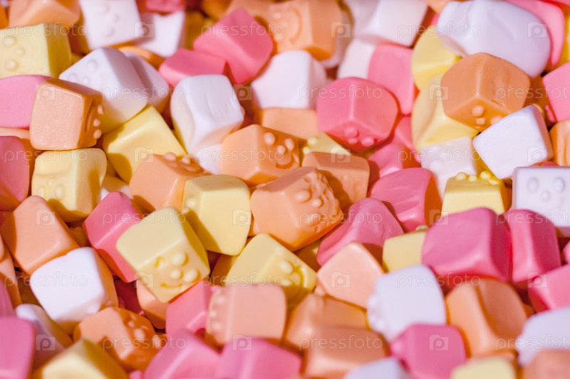 Вид на кучу цветных конфет в супермаркете как фон, текстура