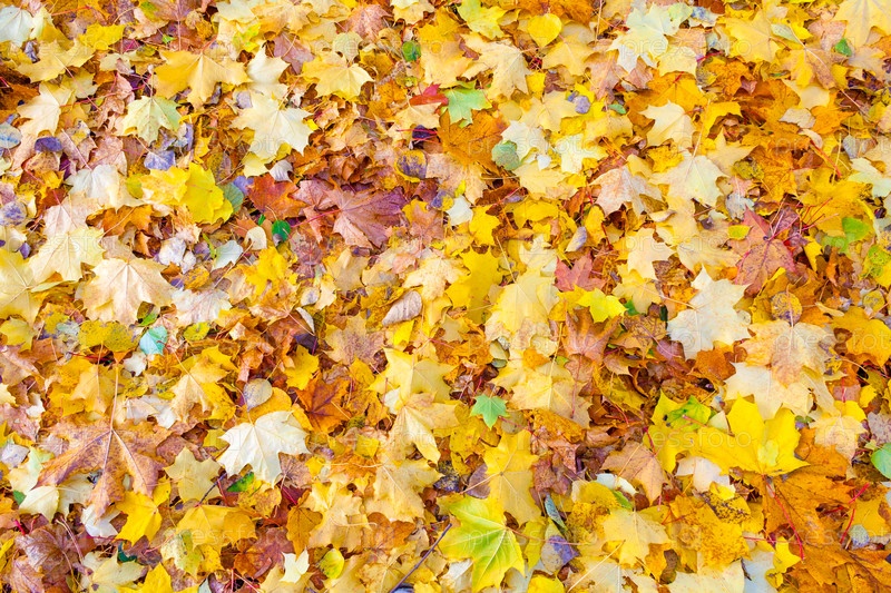 Желтые опавшие листья лежат на земле (текст, фон)