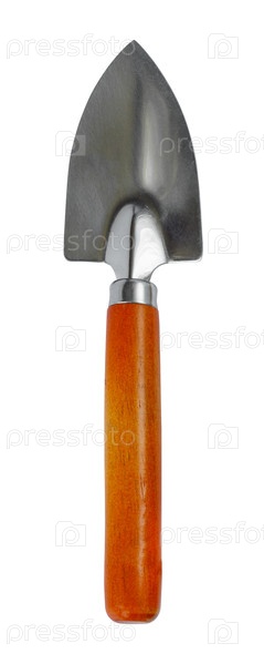 Маленький садовый инструмент. Посадка лопаты с деревянной ручкой изолирована на белом фоне
