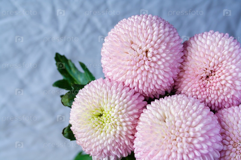 Закрыть вид на букет розовых цветов хризантемы на мягком синем фоне