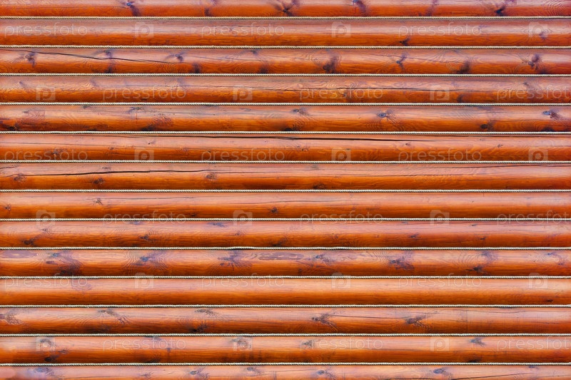 Коричневая деревянная стена из горизонтальных бревен как текстура, фон