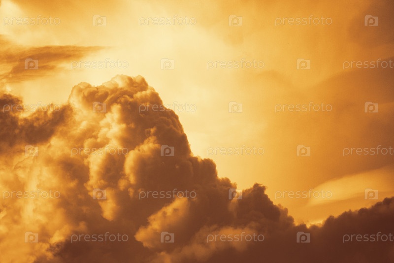 Драматический взгляд на оранжевые пушистые облака как фон (абстракт)