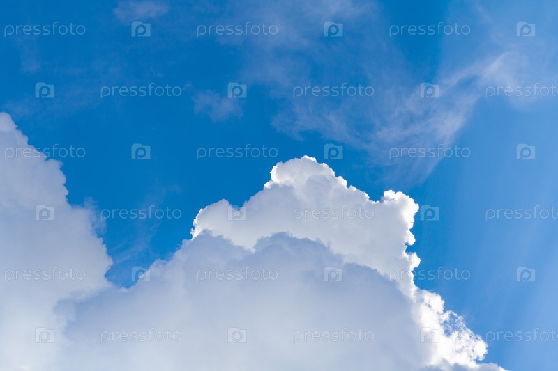 Закрыть вид на белый кучевой пушистые облака в голубом небе