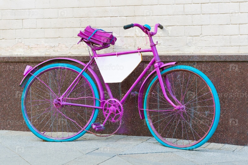Установка с винтажного велосипеда с книгами на сиденье и белой пластиной на раме против кирпичной стены на улице (мокап)