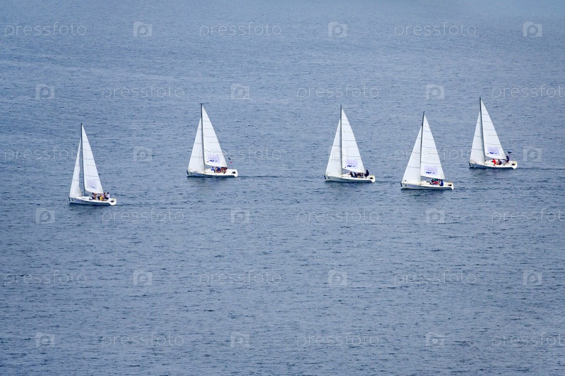 Группа небольших парусных судов на голубой воде