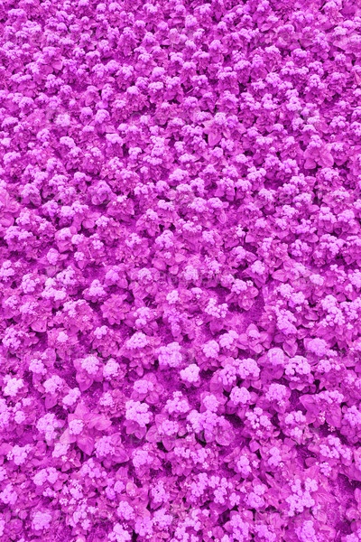Верхний вид газона с фиолетовыми цветами Ageratum (текстура, фон, тонированный)