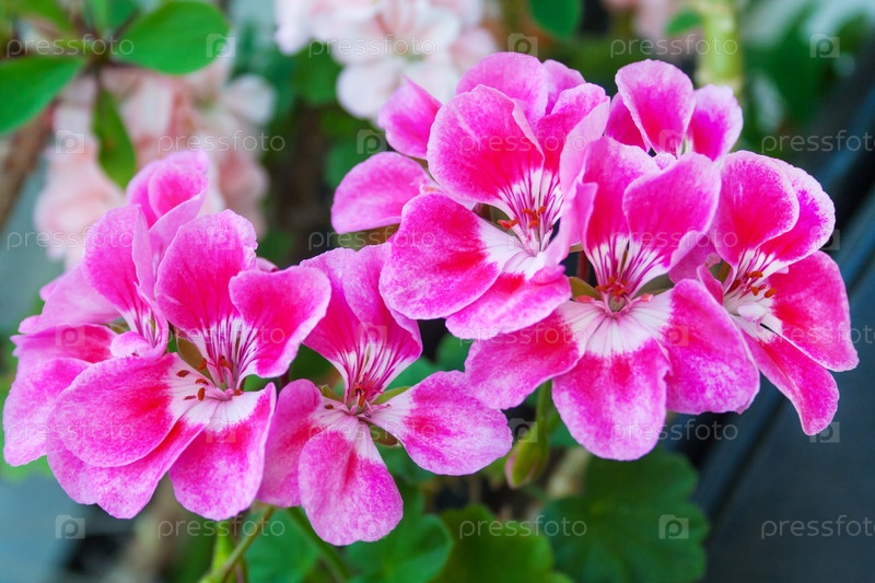 Закройте вид на розовые цветы растения Pelargonium