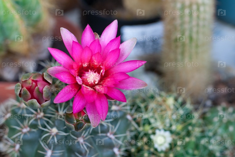 Вид розового цветка Gymnocalycium baldianum cactus (небольшая глубина резкости)