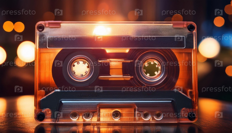 Винтажная аудиокассета, светящаяся под теплым окружающим светом