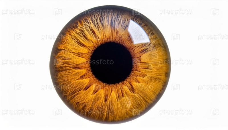 Экстремальный крупный план карого человеческого глаза, показывающего детальную текстуру радужной оболочки на белом фоне