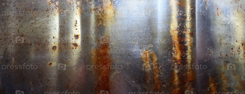 Ржавая металлическая поверхность с царапинами и текстурами. Панорама с пространством для копирования