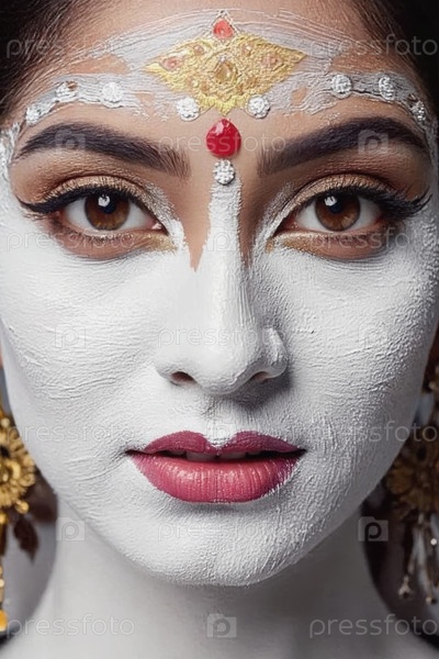 Генеративное женское лицо, покрытое белой глянцевой краской, крупный план женской рекламы красоты