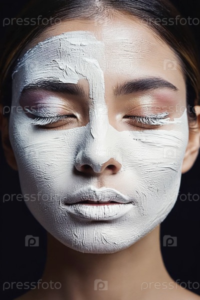 Генеративное женское лицо, покрытое белой глянцевой краской, крупный план женской рекламы красоты