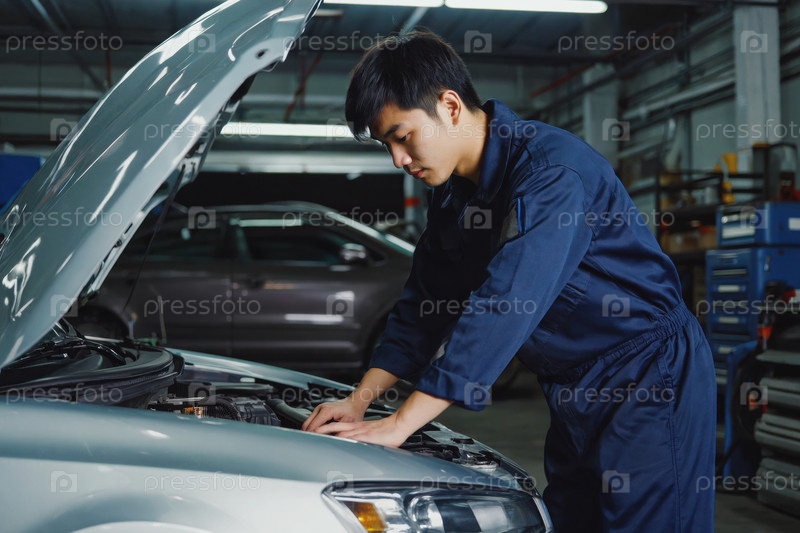 Генеративный человек автомеханик проводит экспертизу поломок и ремонта транспортного средства в автосервисе