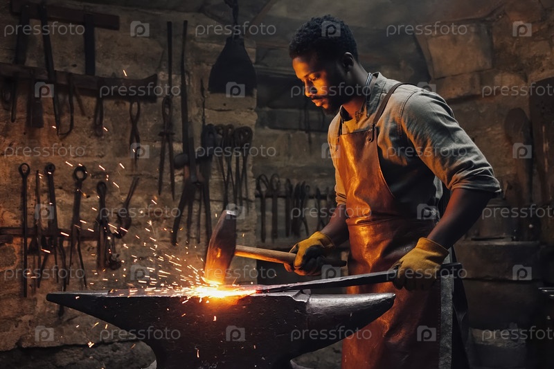 AI Generative Man кузнец ковалки металла в мануфактурной кузнице, ручной работы из стали и железа