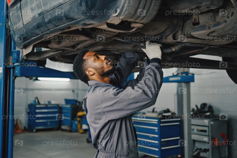 Генеративный человек автомеханик проводит экспертизу поломок и ремонта транспортного средства в автосервисе
