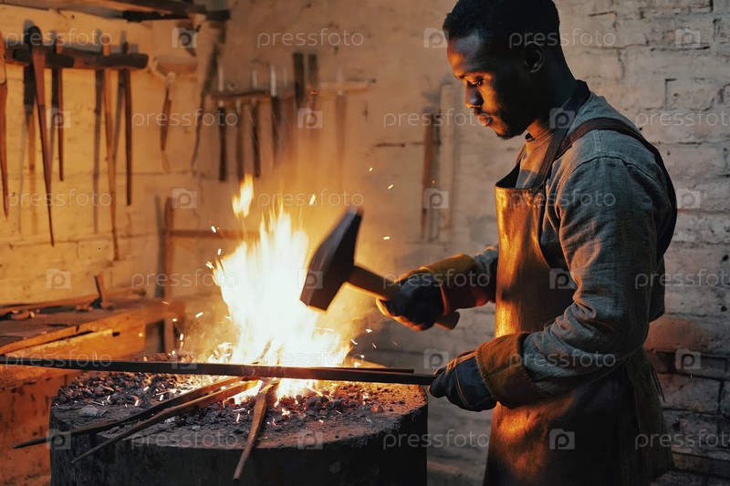 AI Generative Man кузнец ковалки металла в мануфактурной кузнице, ручной работы из стали и железа