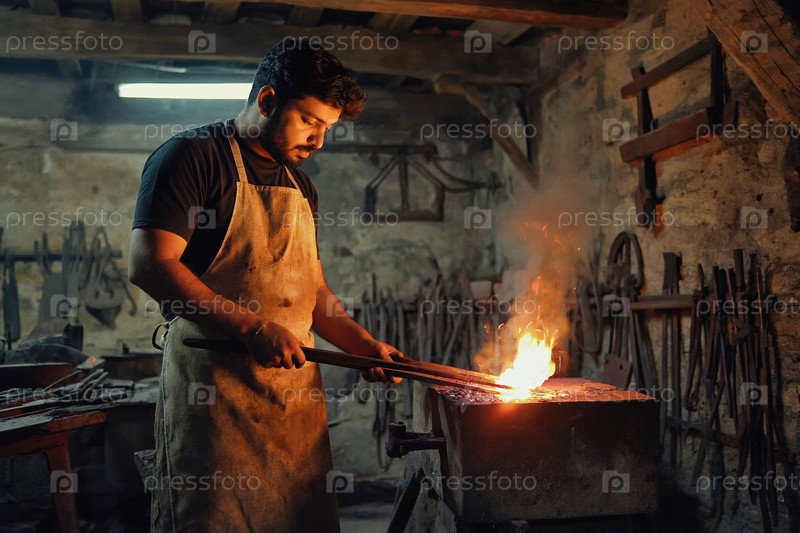 AI Generative Man кузнец ковалки металла в мануфактурной кузнице, ручной работы из стали и железа