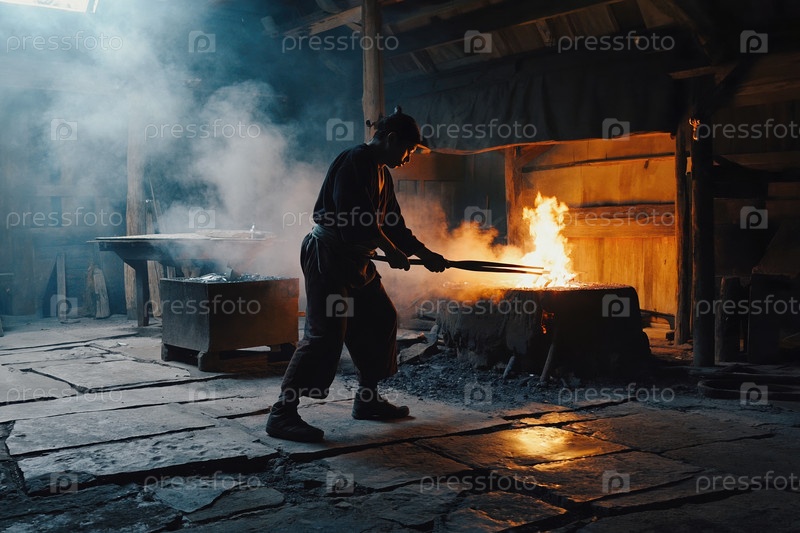 AI Generative Man кузнец ковалки металла в мануфактурной кузнице, ручной работы из стали и железа