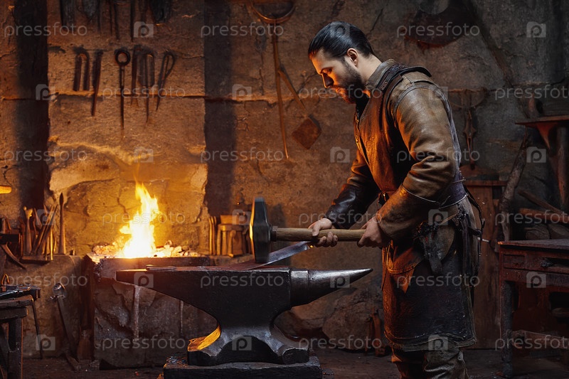 AI Generative Man кузнец ковалки металла в мануфактурной кузнице, ручной работы из стали и железа