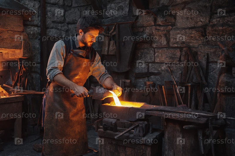 AI Generative Man кузнец ковалки металла в мануфактурной кузнице, ручной работы из стали и железа