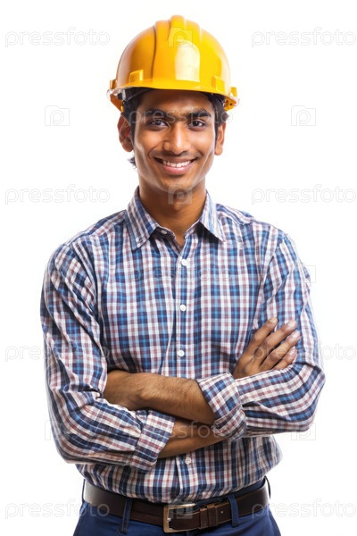 Уверенный индийский строительный работник со скрещенными руками