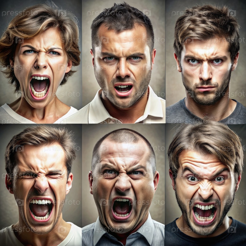 Человек, демонстрирующий различные выражения лица. Генерирующий ИИ