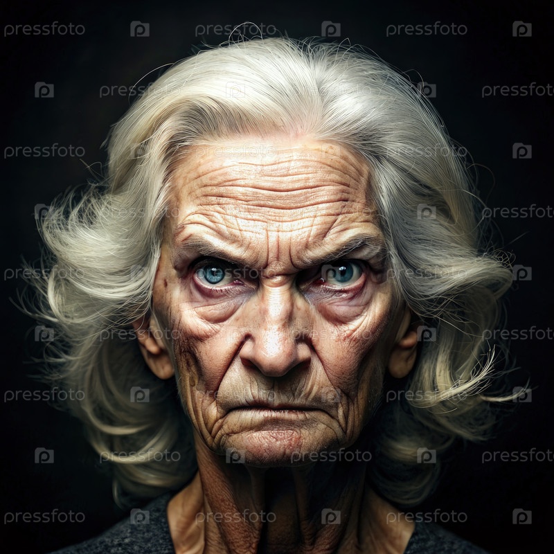 Старуха с белыми волосами и голубыми глазами. Генерирующий ИИ