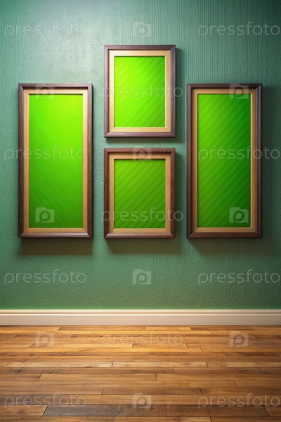 Трио рамок, украшающих яркий зеленый холст. Генерирующий ИИ