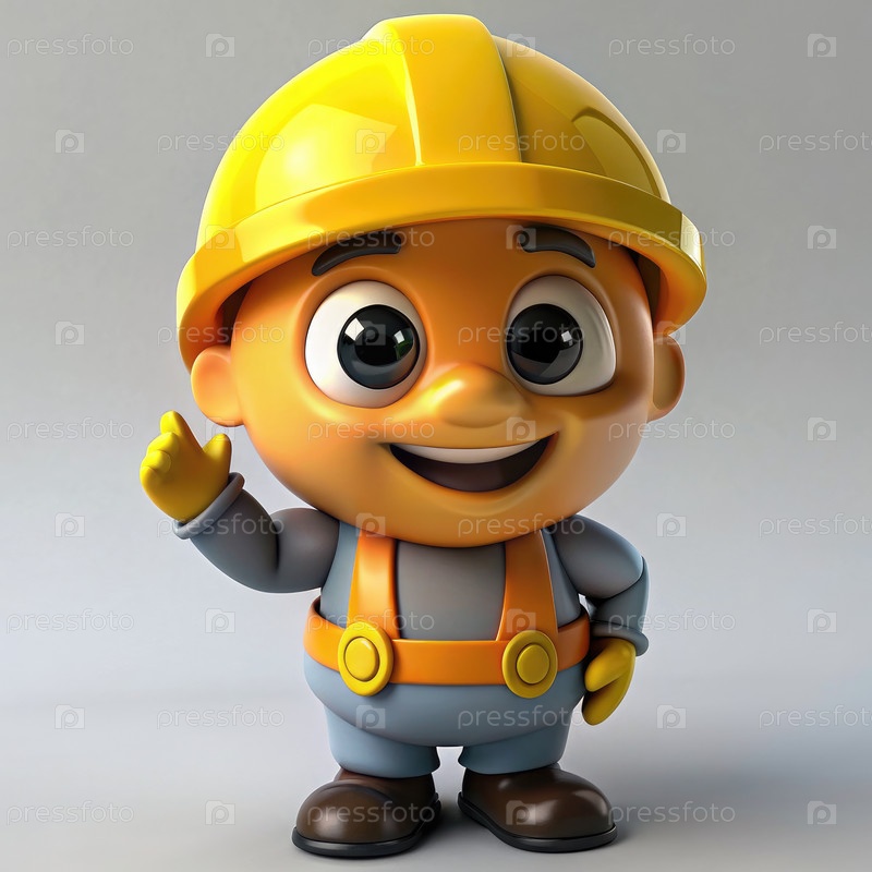 Игривый строительный рабочий талисман, одетый в жесткую шляпу
