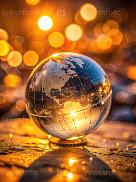 Стеклянный глобус на деревянном столе. Генерирующий ИИ