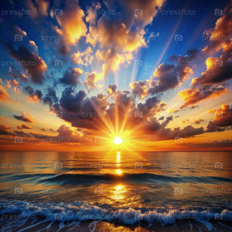 Величественный закат над океаном с облаками Генерирующий ИИ