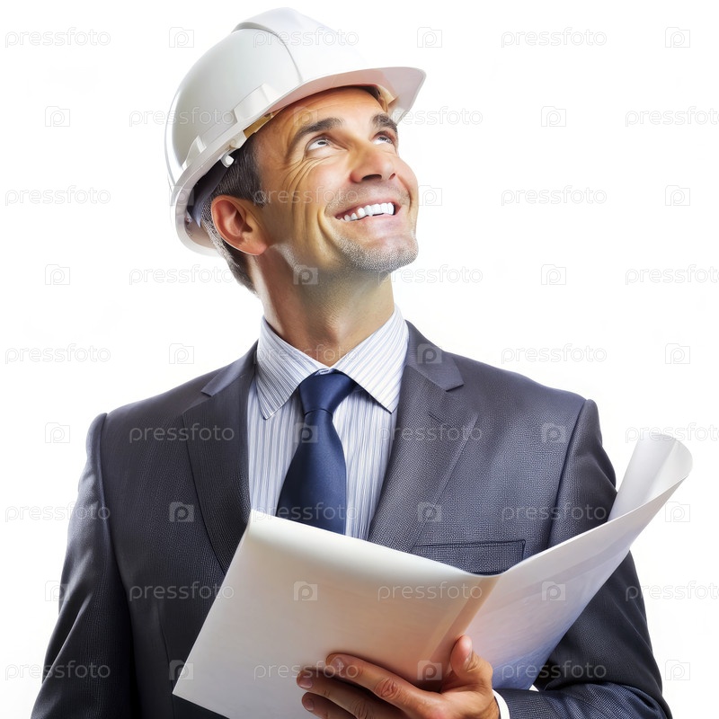 Архитектор держит бумагу, носит жесткую шляпу