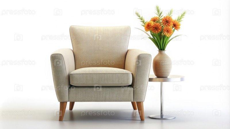Стул и стол со вазой цветов. Генерирующий ИИ