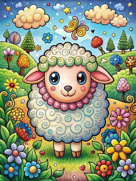 Картина овцы в поле. Генерирующий ИИ