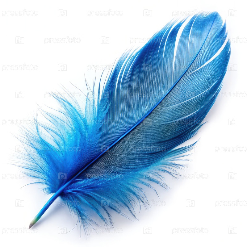 Голубое перо на белом фоне. Генерирующий ИИ