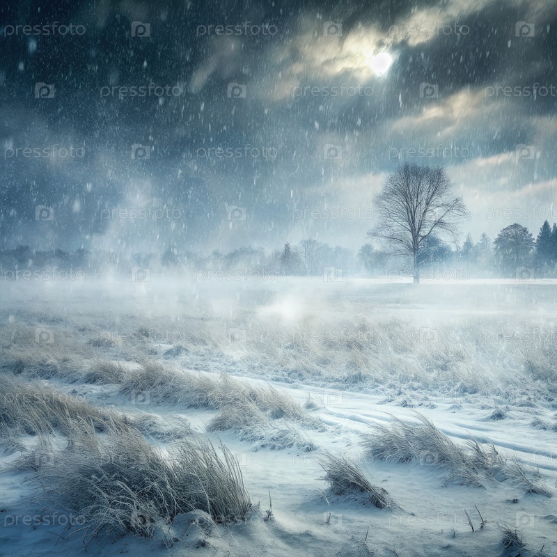 Снежное поле с одиноким деревом Генерирующий ИИ
