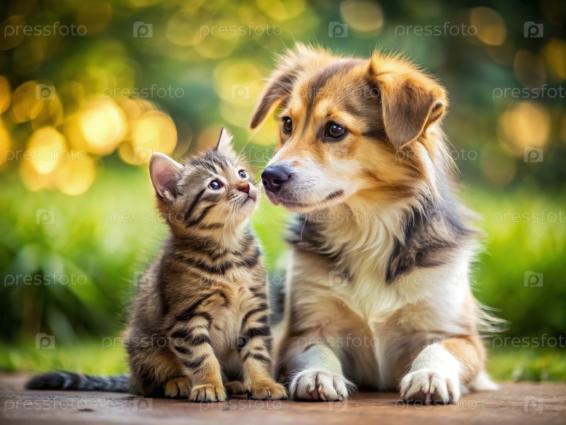 Собака и котенок сидят вместе. Генерирующий ИИ