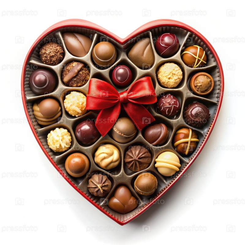 Коробка в форме сердца, наполненная шоколадом. Генерирующий ИИ