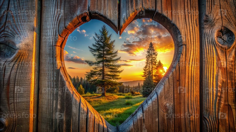 Деревянные заборы с окном в форме сердца. Генерирующий ИИ