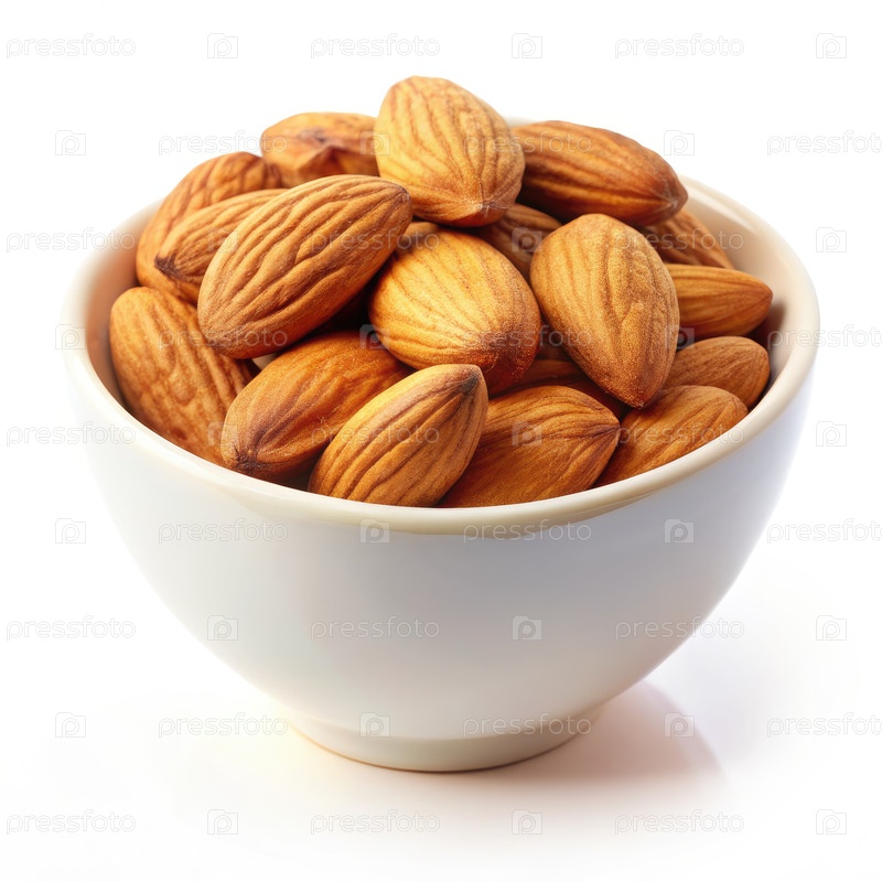 Чаша миндаля на белом фоне. Генерирующий ИИ