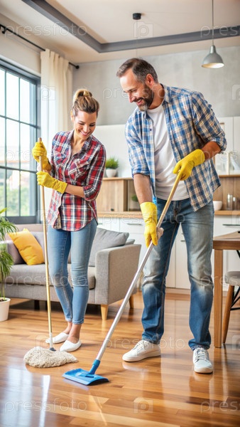 Мужчина и женщина чистят деревянный пол Генерирующий ИИ